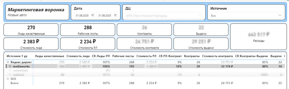 Главным драйвером изменений стала сквозная аналитика и BI-отчетность. Данные рекламных кабинетов, веб-аналитики и CRM-системы дилера были интегрированы Power BI, чтобы видеть не просто клики, а деньги. Это позволило реализовать стратегию в три шага.