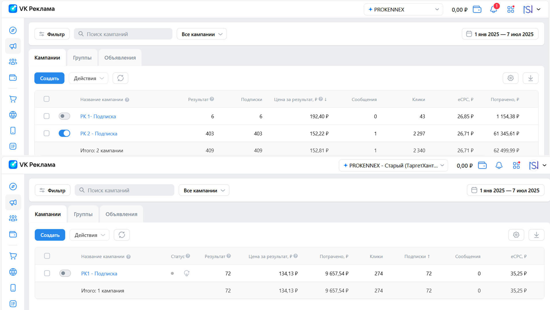 Параллельно с органическим продвижением запущена реклама во ВКонтакте.