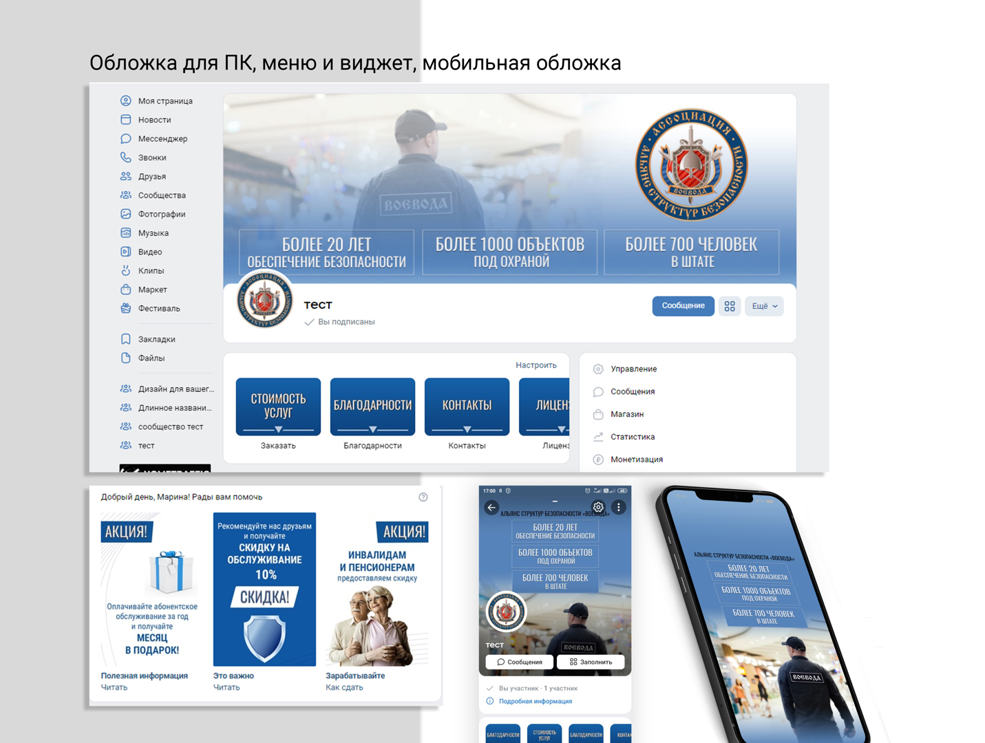 - Уникальные баннеры-обложки для главной страницы сообществ ВКонтакте и Одноклассников, адаптированные под ПК и мобильные устройства.