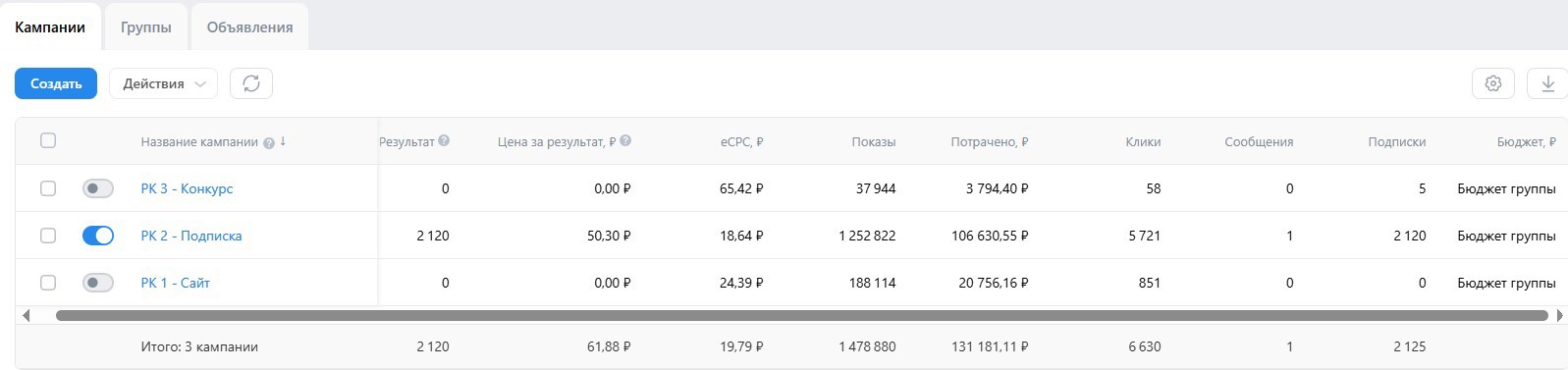 - Минимальная стоимость привлечения подписчика: 35 ₽