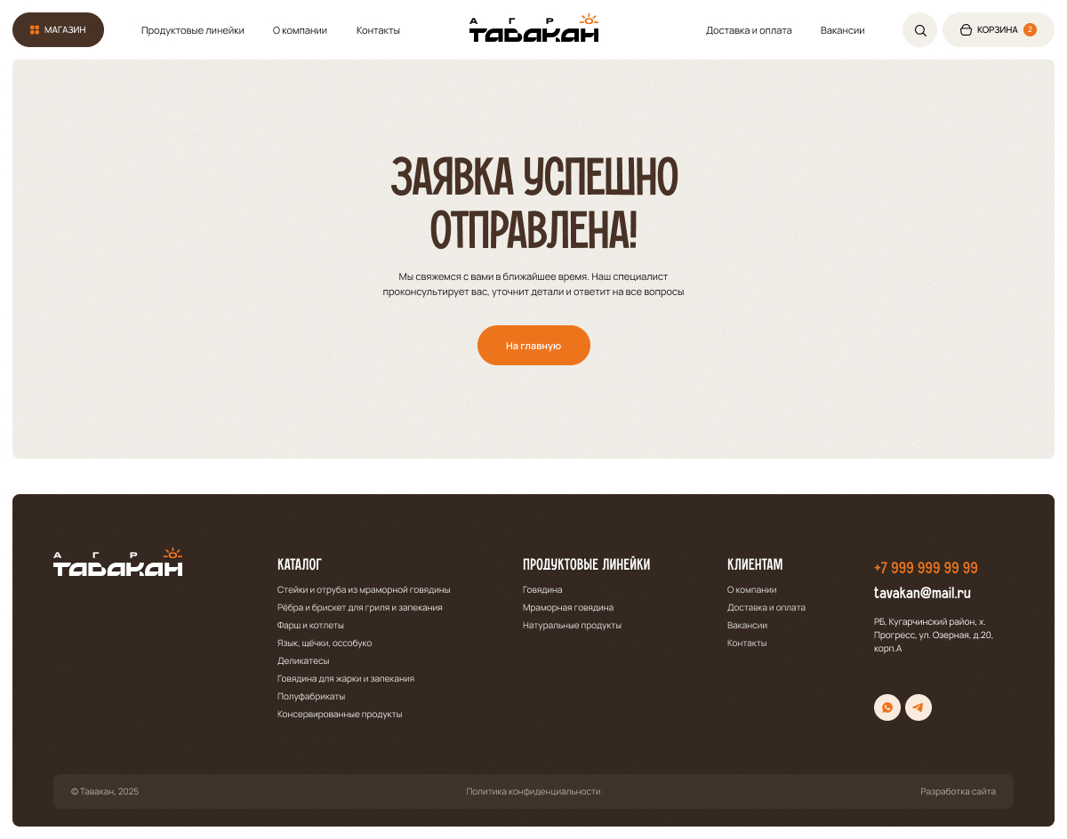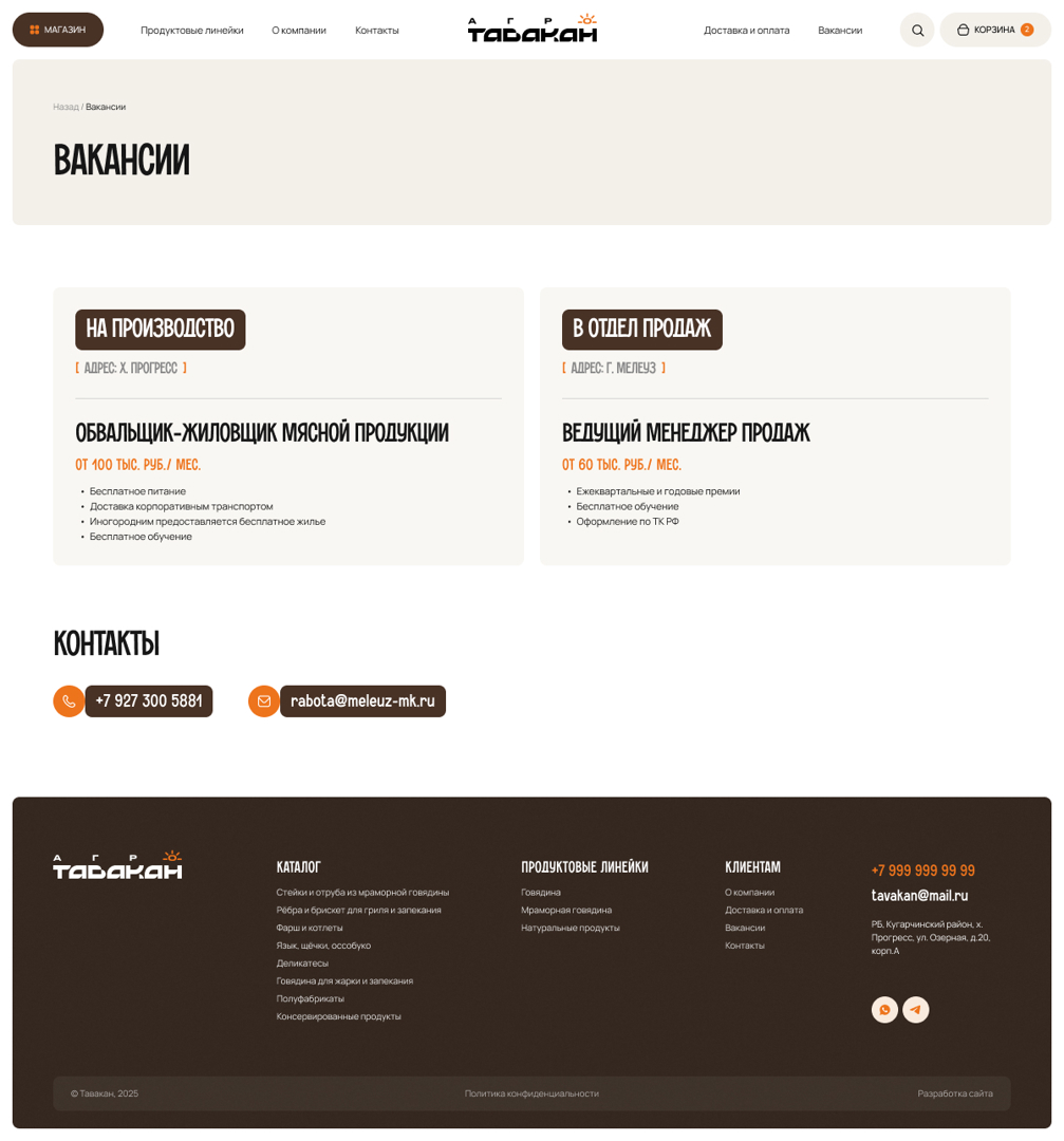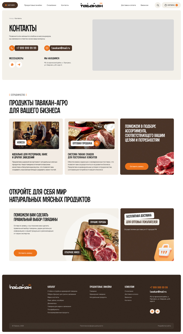 Сайт для «Tavakan Agro» стал эффективным маркетинговым инструментом и удобной платформой для взаимодействия с клиентами и партнерами. Каждый этап работы — от проектирования структуры до финальной реализации — был направлен на увеличение доверия к бренду и упрощение процессов коммуникации и заказа.
