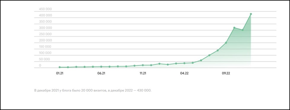 В 2022 году была поставлена новая цель по трафику – 1 млн. визитов в месяц с поиска. По прогнозу к концу года органический трафик на блог мог составить 359,675 тыс. с ростом в 17 раз к декабрю 2021 года. Достигнуть миллиона визитов реально было в 2023 году. Агентство решило придерживаться реальных показателей и увеличивать трафик. Цель разделили на 4 задачи: