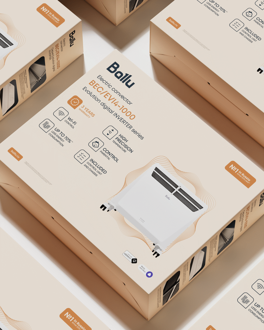 Отдельного внимания заслужили упаковка и иконки. Волна, как один из базовых элементов нового стиля стала неотъемлемой частью декоративных решений — теперь она помогает быстрее ориентироваться в продуктовых линейках. В сегменте высокотехнологичной климатической техники упаковка играет особую роль и часто ведет диалог с клиентом посредством инструкций. Графические знаки также были полностью переработаны и выстроены в единую визуальную систему, которая превратилась в универсальный язык, понятный и логистам, и продавцам, и покупателям.