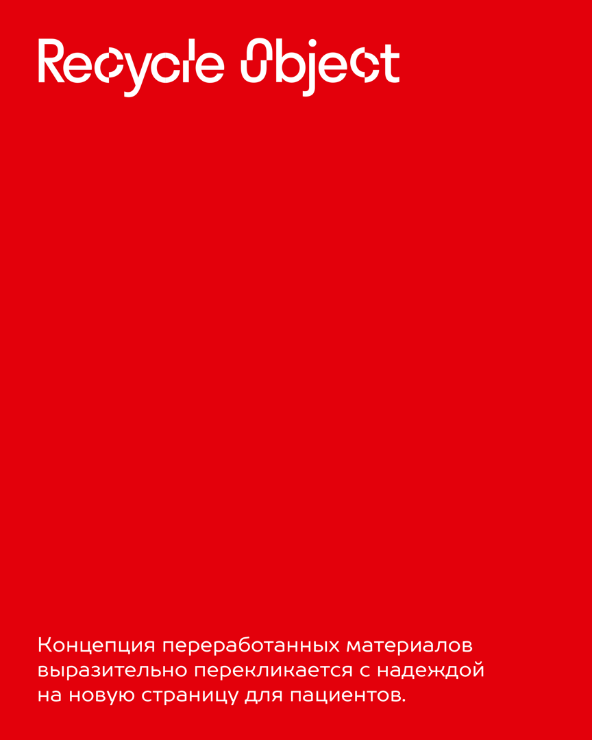 Экологическая составляющая проекта была реализована в коллаборации с брендом Recycle Object. Совместная работа позволила создать обвес из переработанного пластика, выдержанный в цветовой гамме нового символа. Этот продукт не только напоминает о судьбоносной встрече двух людей, но и несет в себе идею нового начала. Концепция ресайклинга и вторичного использования материалов идеально перекликается с надеждой пациентов на полное выздоровление и начало счастливой жизни.