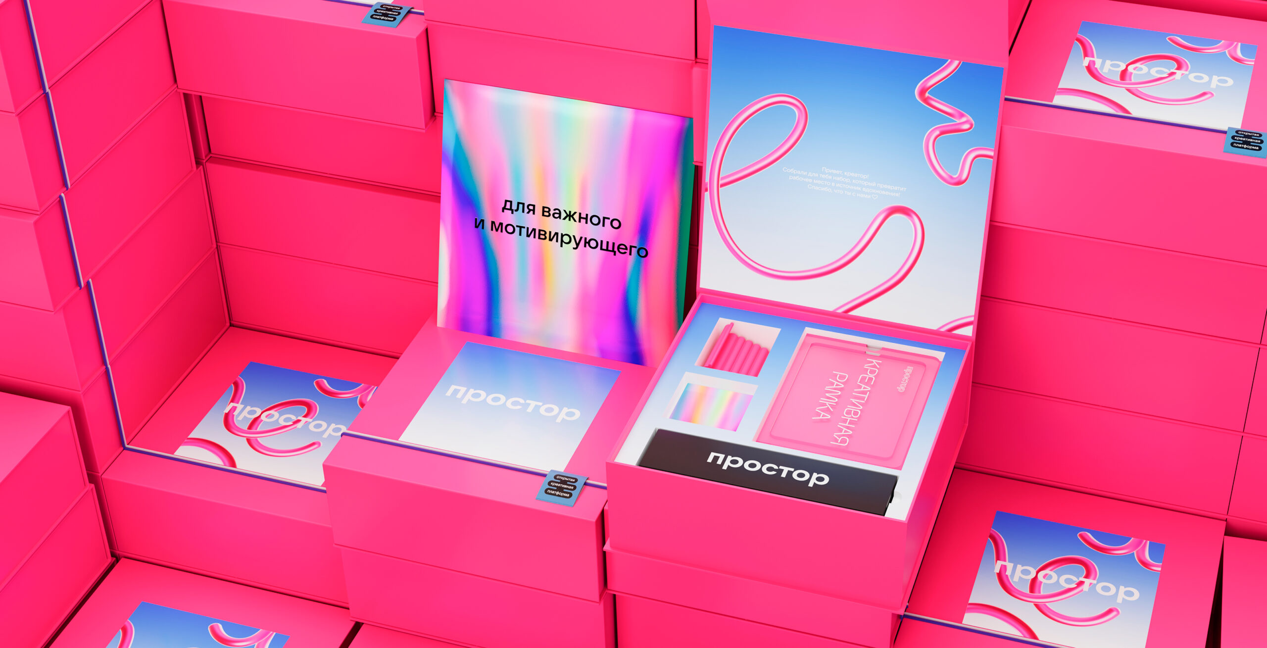 Уже на этапе распаковки начинается погружение в мир креатива. Упаковка выполнена из качественного глянцевого картона, который приятно держать в руках. Яркий, но не кричащий дизайн визуально показывает ценности бренда VK Простор: современность, энергичность и открытость.