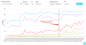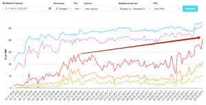 Линии на графиках обозначают количество запросов в ТОПе:
