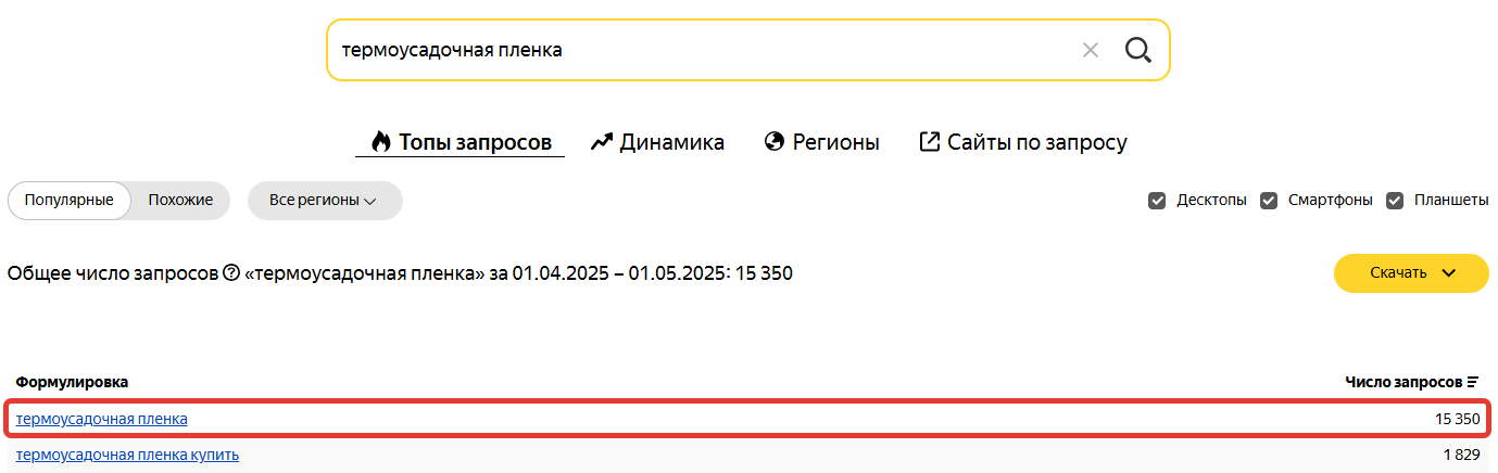 «пвд пленка» (6 238) и другие ключевые для отрасли поисковые фразы.