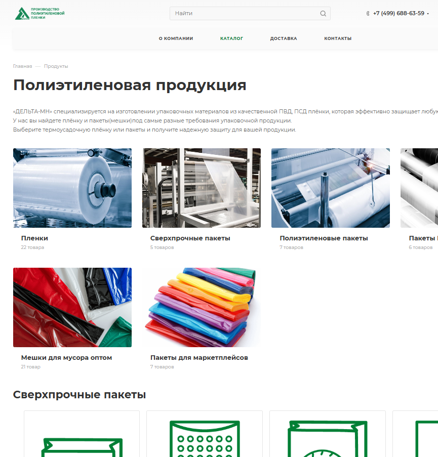 Компания «Дельта-МН» представляет собой крупного производителя полиэтиленовой продукции с четвертьвековой историей на российском рынке. Предприятие специализируется на выпуске разнообразных видов полиэтиленовой пленки и работает преимущественно в сегменте B2B, обслуживая корпоративных заказчиков и торговые сети.