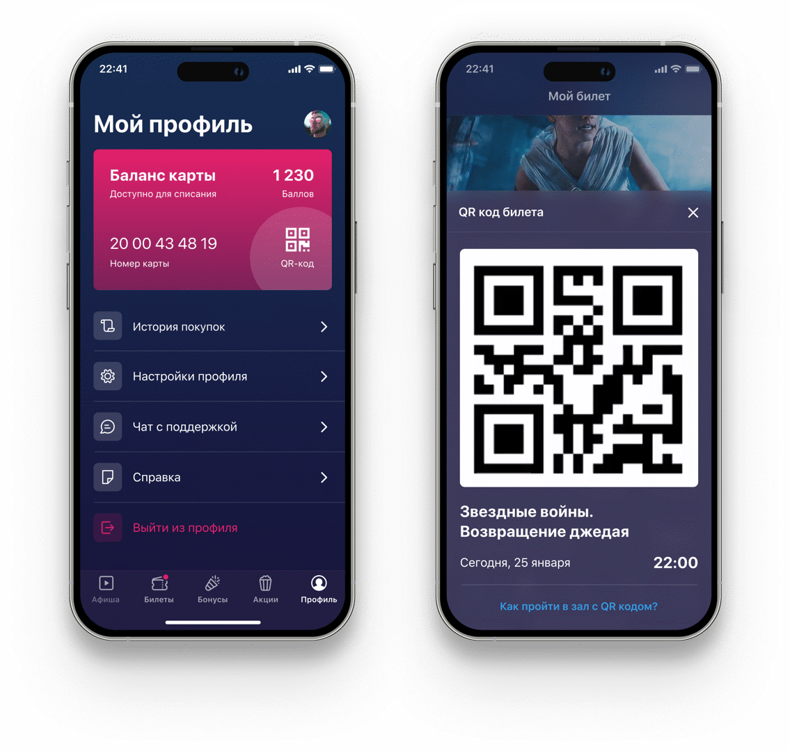 В мобильном приложении внедрена упрощенная процедура для легкого приобретения билетов, не отнимающего много времени. Пользователи вовремя получают новости о премьерах и осуществляют бронирование. Электронные билеты в формате QR-кода находятся непосредственно в приложении, что позволяет не беспокоиться о традиционных бумажных носителях.