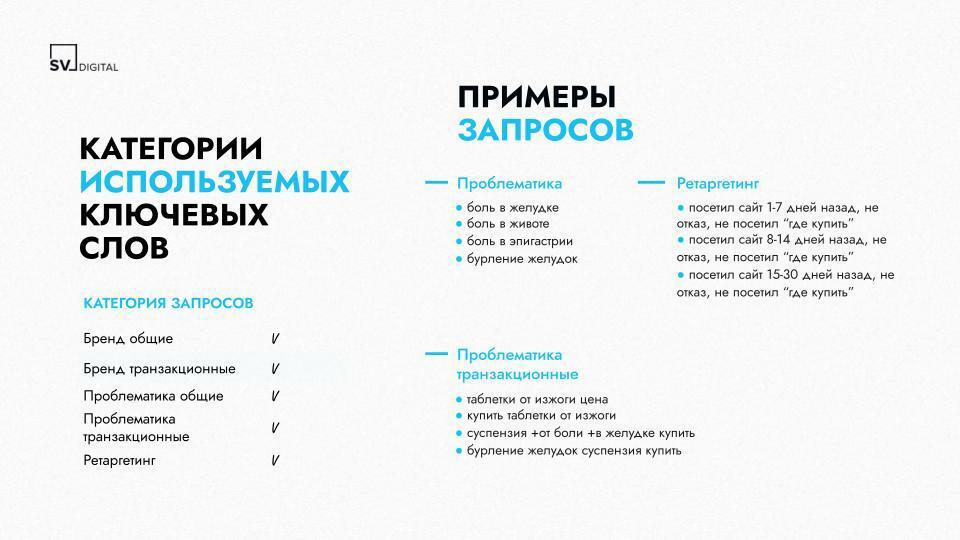 - информационные запросы для привлечения пользователей, которые еще не приняли решение о покупке, но хотят узнать о заболевании.