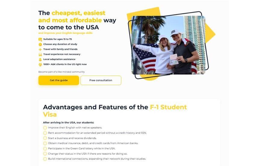 Компания-консультант по оформлению языковых виз в США, которая предоставляет полный комплекс услуг: от разработки визовой стратегии и подготовки к собеседованию до помощи в обустройстве в стране.