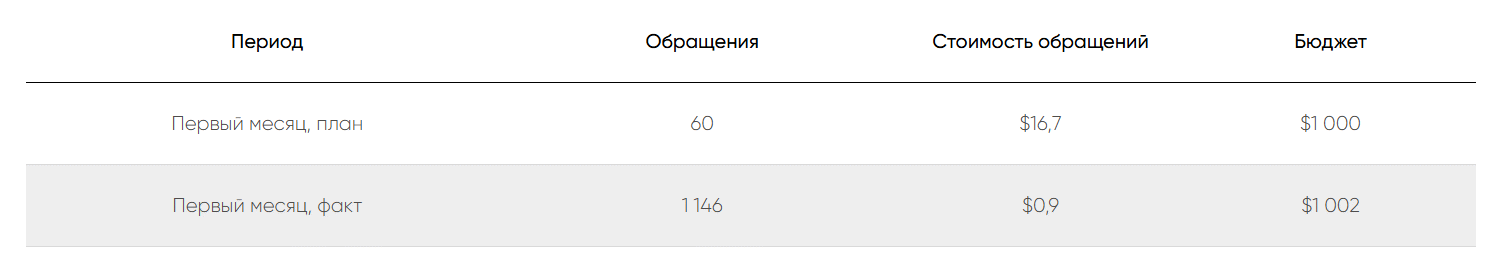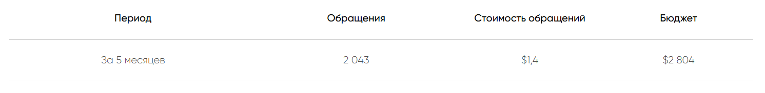В первый месяц после запуска клиент получил 1 146 заявок, во втором — еще 719 обращений. Операторы не могли справиться с таким наплывом клиентов, так что заказчик попросил сознательно уменьшить количество лидов.