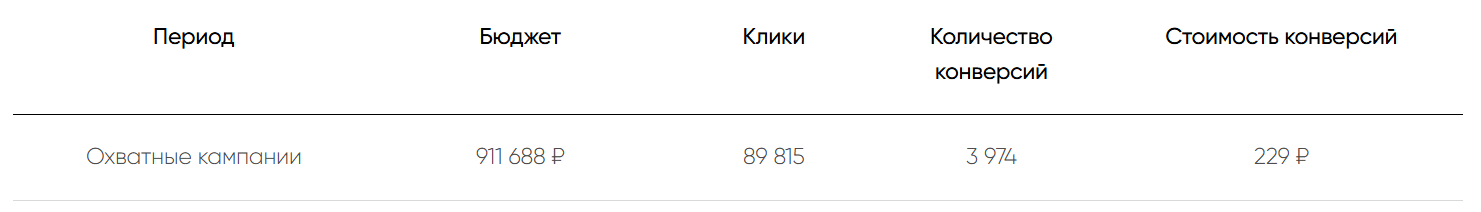 Охватные кампании требовались для того, чтобы повысить узнаваемость бренда, прогреть аудиторию и заложить фундамент для будущих продаж. Для этого были: