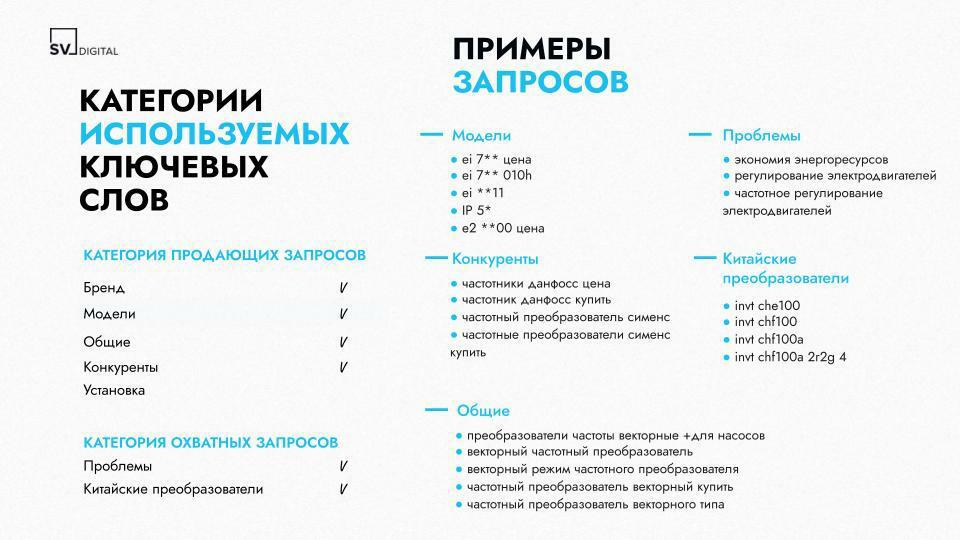 • с нуля собрали ~1300 коммерческих и высокоинтенциональных запросов (например, «прайс-лист на ИБП» и «заказать блок питания»);