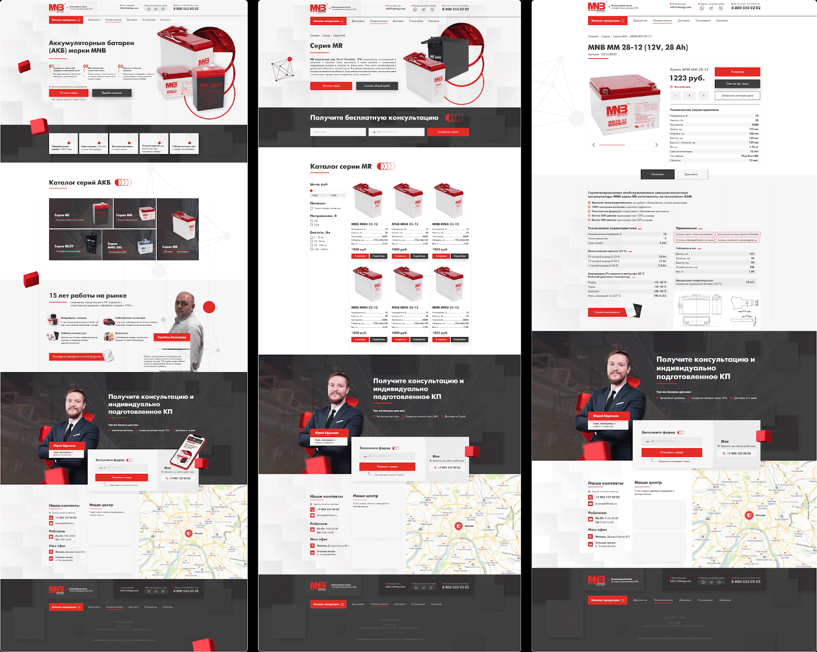 - Отрисовали 16 уникальных дизайнов страниц: яркий, уверенный визуал с красными акцентами