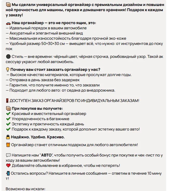 - Написали описание с акцентов на гарантии, доставку, объемы