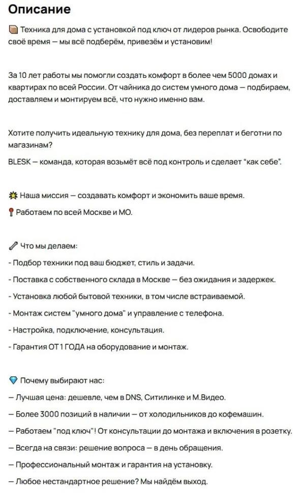 - Прописали описание: что за компания, в чем специализация