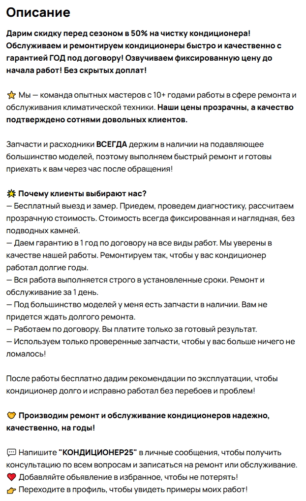 - Сделали новый баннер: “Ремонт и чистки кондиционеров за 1 день, выезд за 1 час”