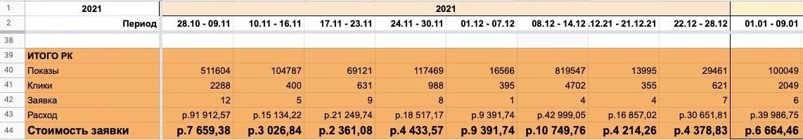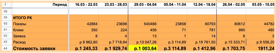 Через месяц тестов эффективность повысилась: количество заявок увеличилось до 5–8 в неделю, а их стоимость снизилась до 5 000 рублей.