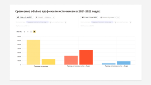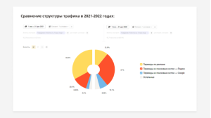 - До 2022 года основным источником трафика был Яндекс Директ, а с 2018 года запускались кампании в Google Ads, обеспечивавшие 5–7% трафика.