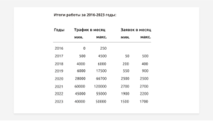 - Среднемесячный трафик составил пятьдесят тысяч посетителей, а число заявок — 1 700 в месяц.