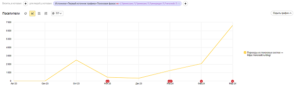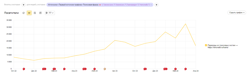Рост небрендового трафика из ПС по направлению кредитов