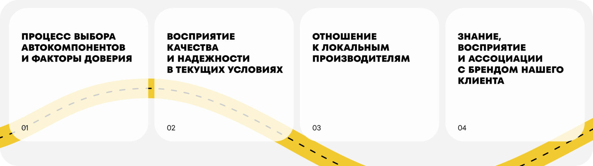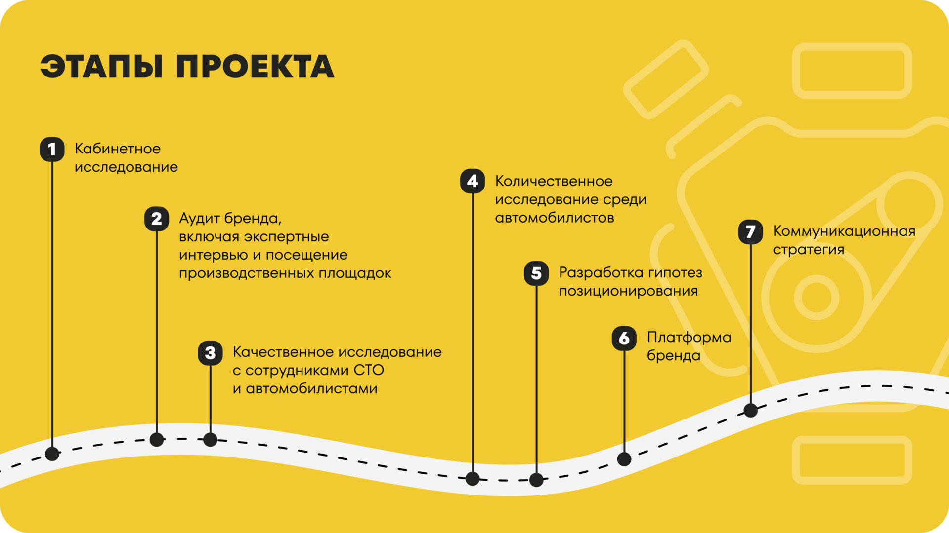 Для формирования гипотез специалисты агентства Heads провели серию глубинных интервью. Помимо общения с представителями команды клиента, в исследовании приняли участие сотрудники СТО и автомобилисты. Полученные инсайты позволили сформировать гипотезы для количественного исследования.
