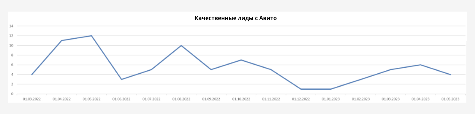 Так как сразу же условились с клиентом, что будем учитывать только качественные лиды (с которыми можно связаться и которые интересуются продуктом), то дальше количество всех лидов брать во внимание не будем.