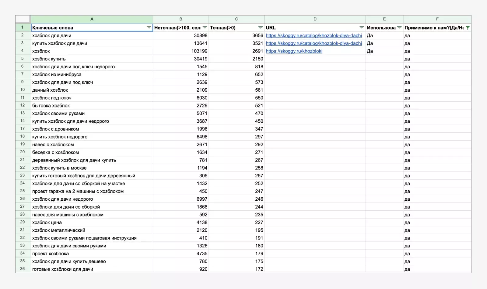 В итоге проделали работу, которая позитивно отразится в тот момент, когда начнутся основные работы по продвижению страниц в поисковике. Затем просто использовали собранное ядро под рекламу, из которого выделили основные категории.