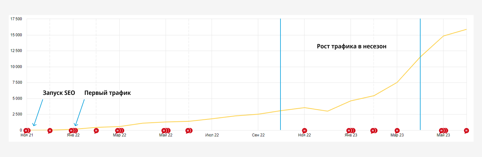 Подробное описание процесса создания многоуровневого каталога, а также решение вопроса с охватом всех целевых запросов расскажем в нашем кейсе по SEO-оптимизации.