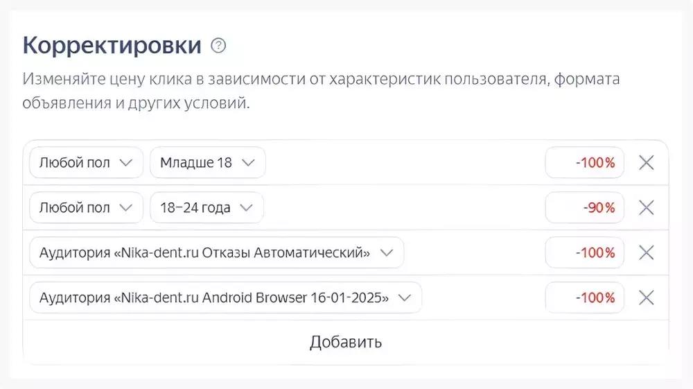 Исходя из этого анализа, в настройках рекламных кампаний были произведены следующие изменения: