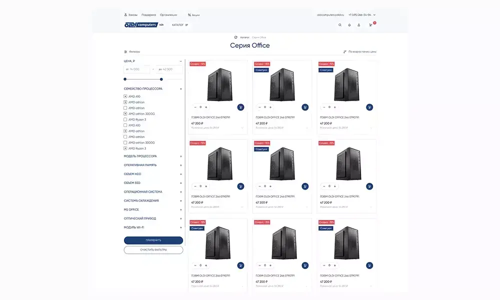 Поскольку ассортимент представлен компьютерной техникой, для облегчения поиска необходимого товара реализовали функцию фильтрации по техническим характеристикам.