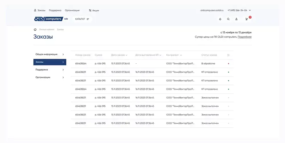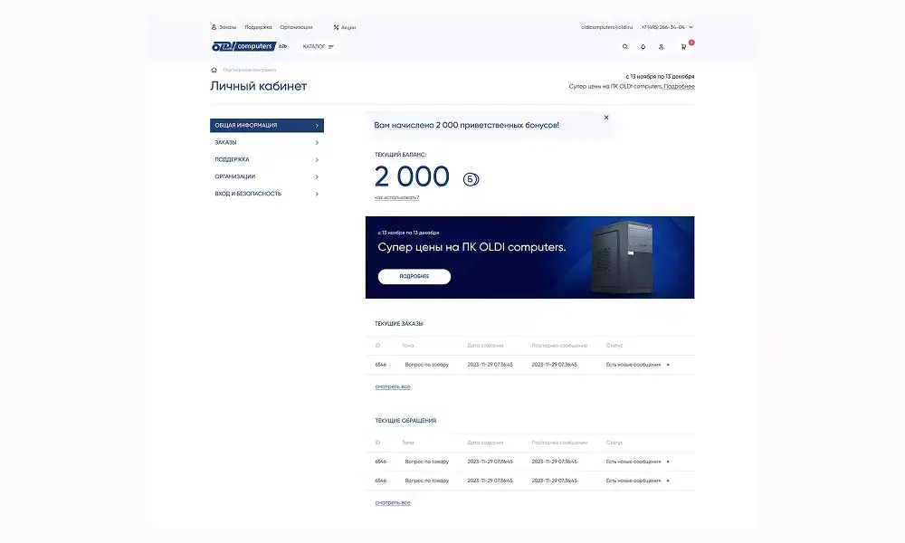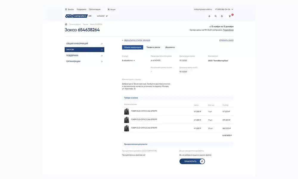 Занимались проектом интернет-магазина для OLDI Computers, крупного российского изготовителя компьютерного оборудования. Одна из ключевых задач – реализация закрытого сайта с хорошо организованным ЛК специально для корпоративных клиентов и деловых партнеров (B2B). Это подразумевало строгий контроль доступа: содержимое ресурса было доступно исключительно после предварительного согласования администрации. Чтобы обеспечить надежную защиту данных и комфортное взаимодействие, создали систему подачи и согласования запросов на регистрацию и получение доступа.