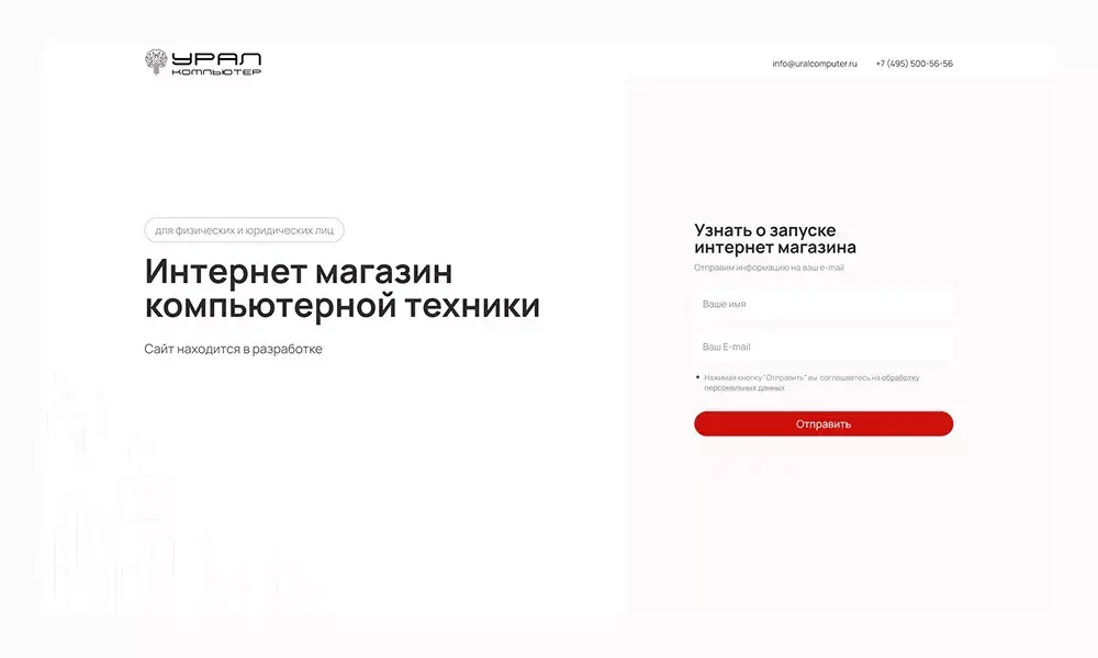 Во время разработки сайта временно разместили страницу-заглушку с сообщением «Сайт находится в стадии разработки». Этот простой ход позволил сразу приступить к подготовке продвижения: