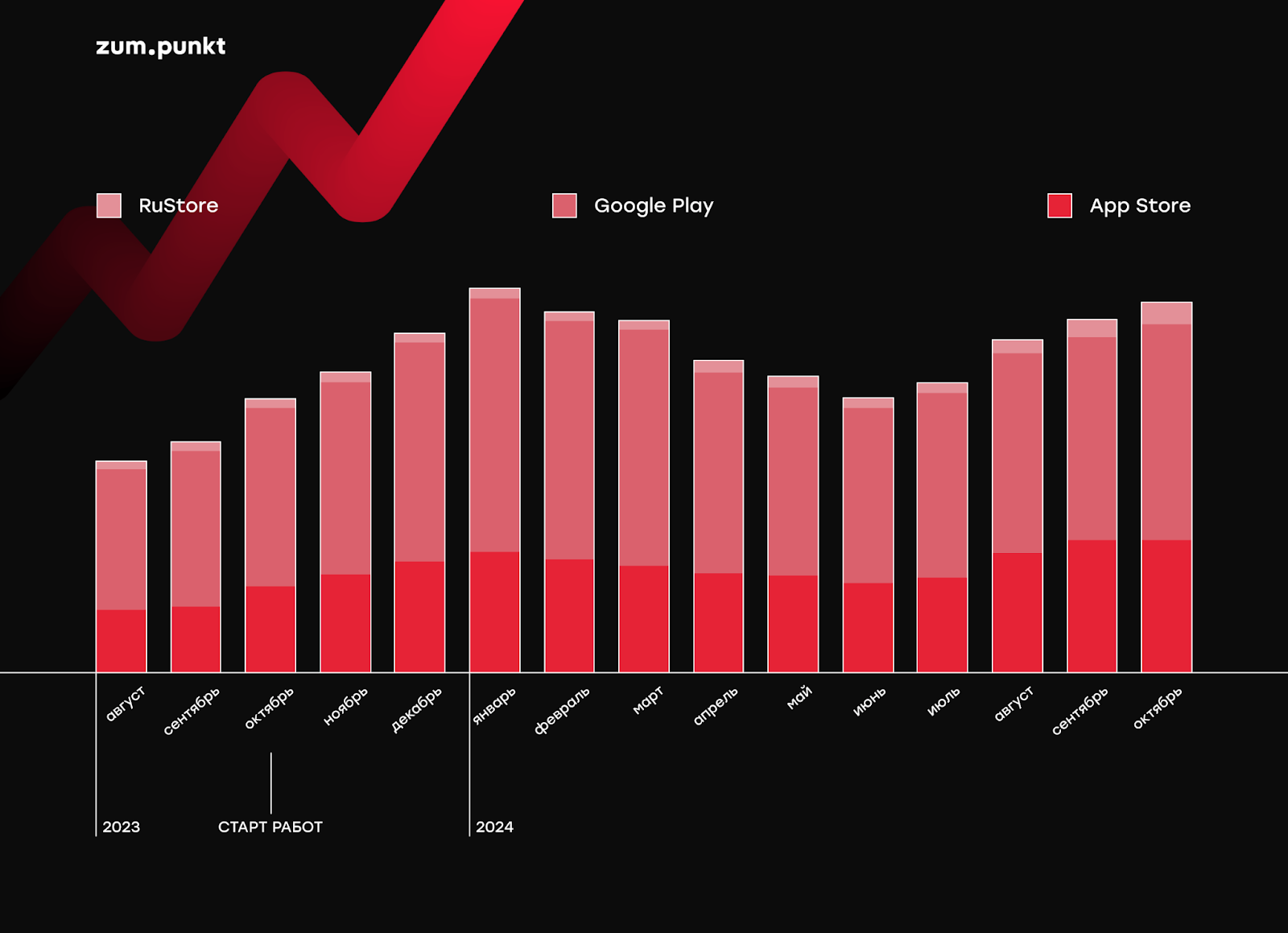 Хотите такой же рост органических установок в сторах? Обратитесь в Zum Punkt. Они помогут выстроить ASO-стратегию под ваш продукт.