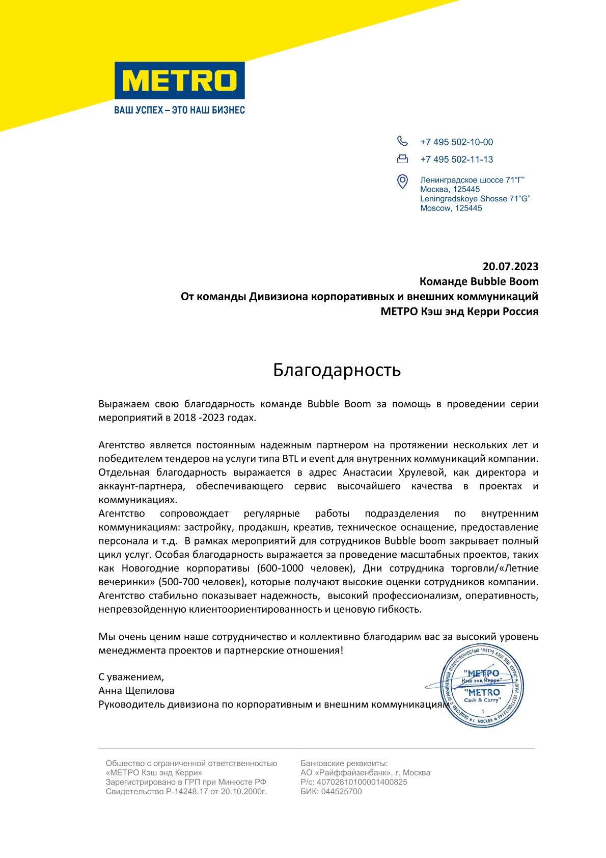Анна Щепилова Руководитель дивизиона по корпоративным и внешним коммуникациям МЕТРО Кэш энд Керри Россия