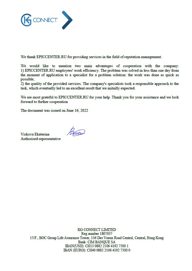 We thank EPICCENTER RU for providing services in the field of reputation management.