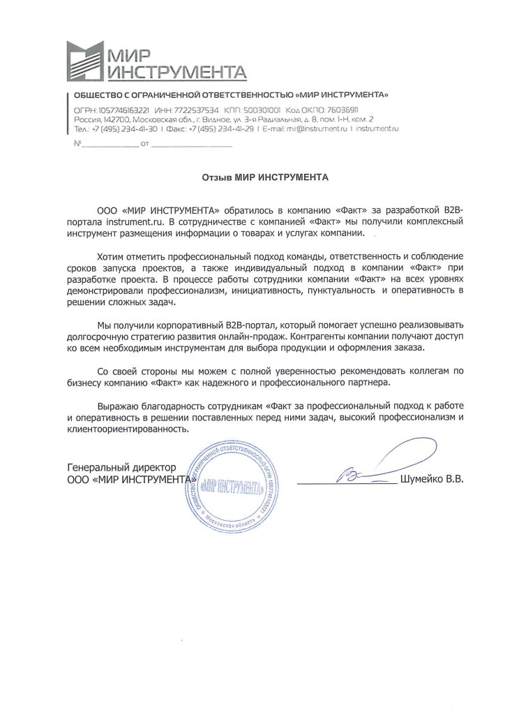 Шумейко В.В., Генеральный директор, ООО «МИР ИНСТРУМЕНТА»