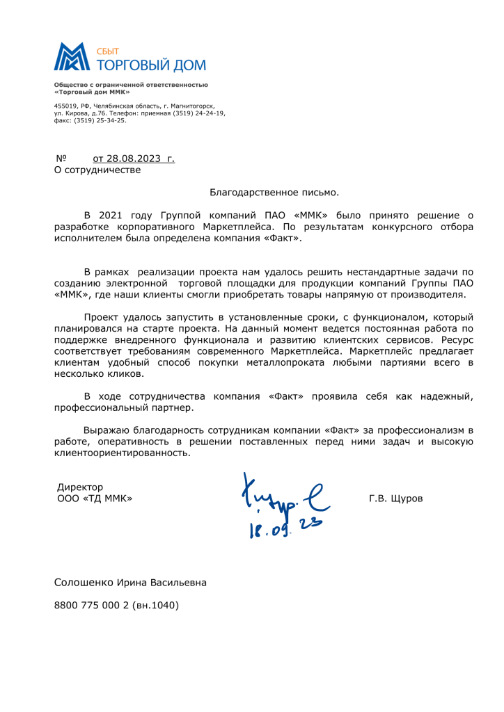 Щуров Г.В., Директор, ООО «ТД ММК»