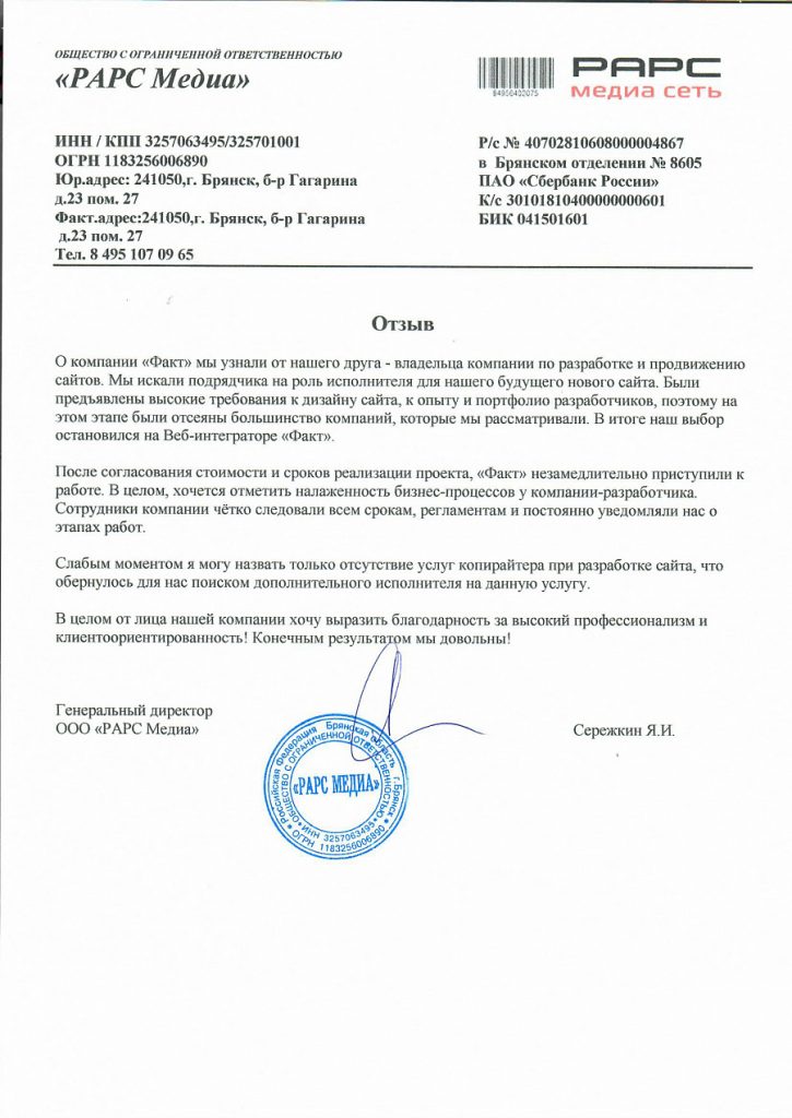 Сережкин Я.И., Генеральный директор, ООО «РАРС Медиа»