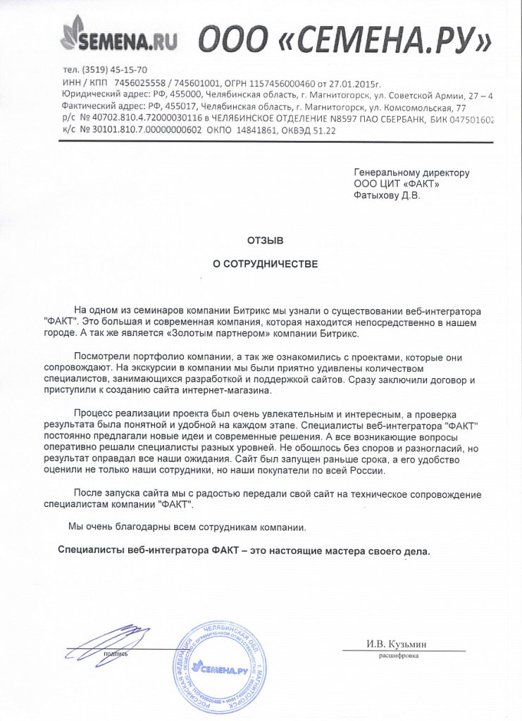 Кузьмин И.В., Представитель компании ООО «Семена.ру»