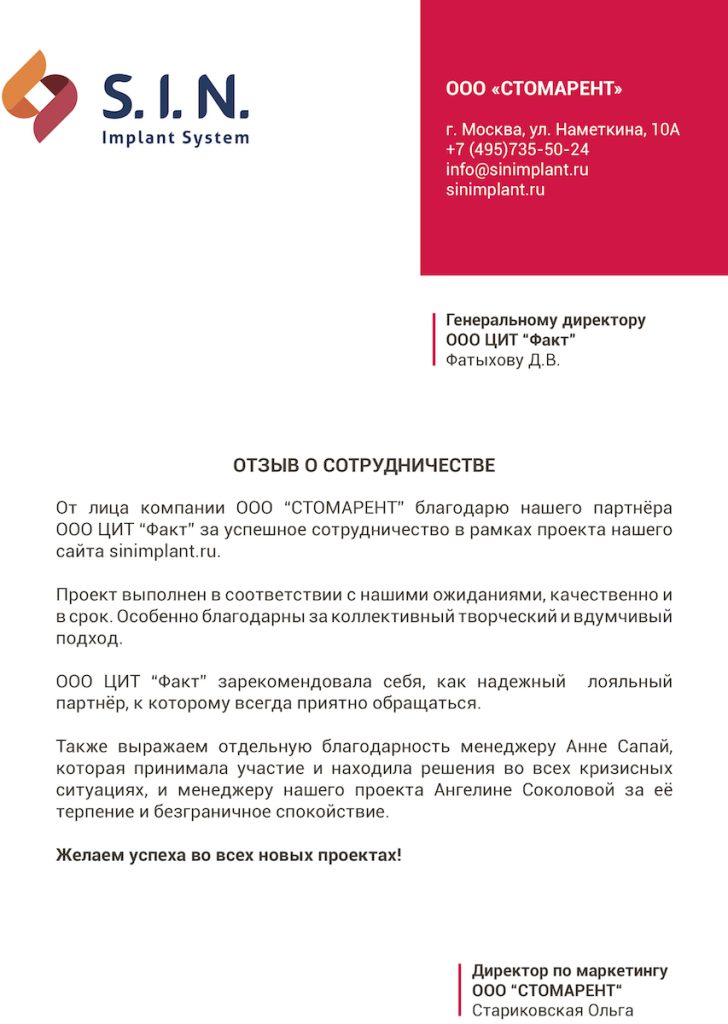 Стариковская Ольга, Директор по маркетингу, ООО «СТОМАРЕНТ»