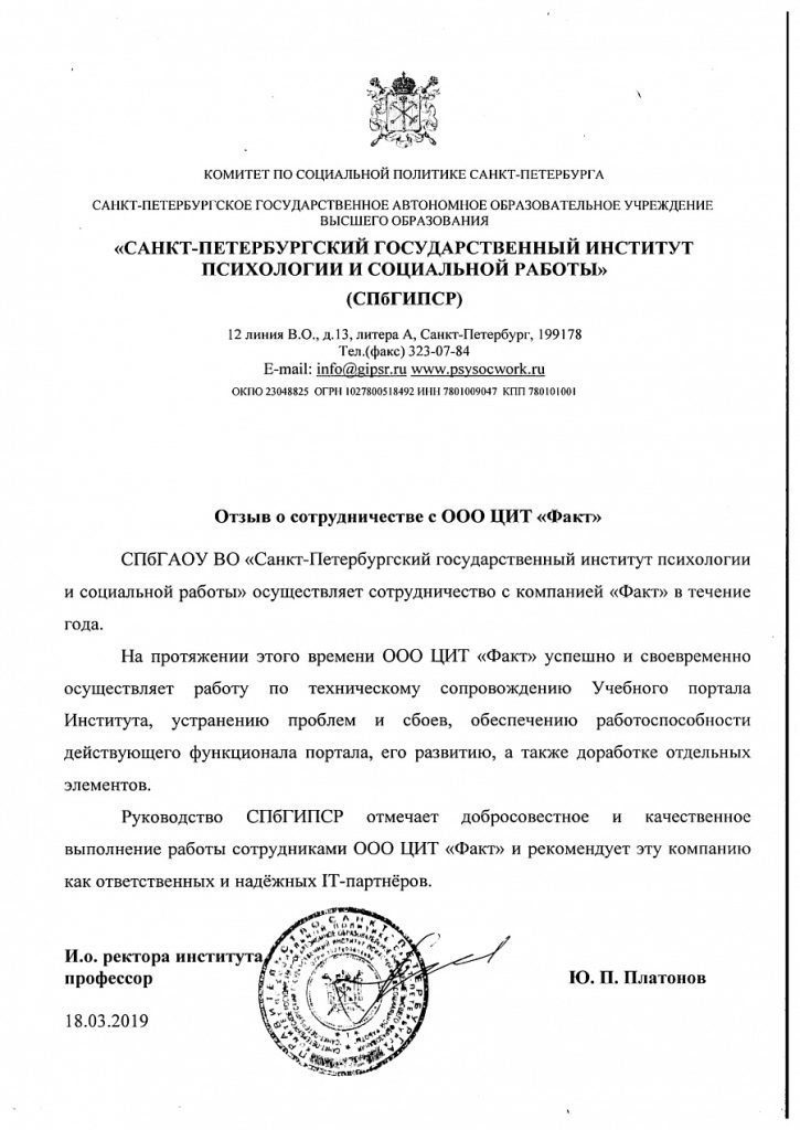Платонов Ю.П., И. О. ректора института профессор, Санкт-Петербургский государственный институт психологии и социальной работы