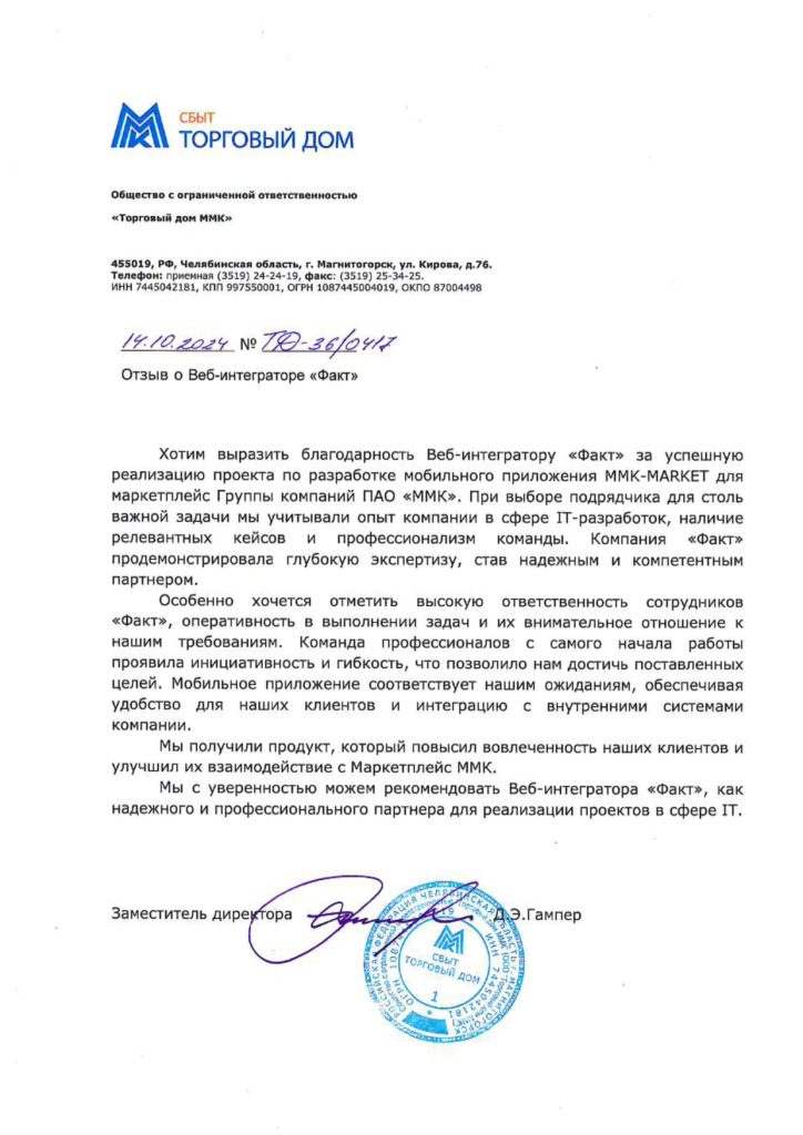 Гампер Д.Э., Заместитель директора, ООО «ТД ММК»