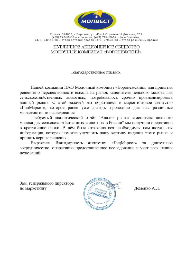 Деменко А.Л., Заместитель генерального директора по маркетингу, Молочный комбинат "Воронежский"