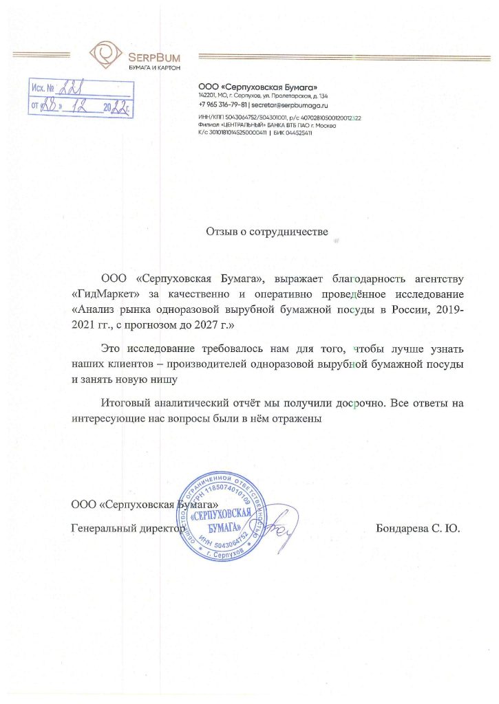 Бондарева С.Ю., Генеральный директор, ООО "Серпуховская Бумага"