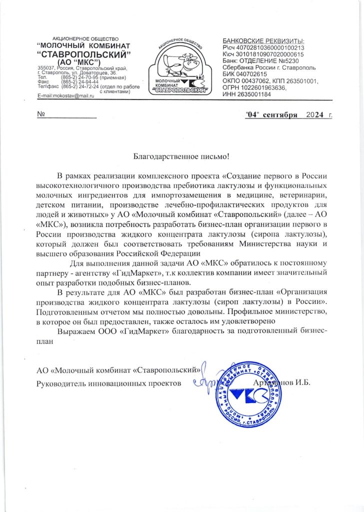 Артамонов И.Б., Руководитель инновационных проектов, АО "Молочный комбинат "Ставропольский"