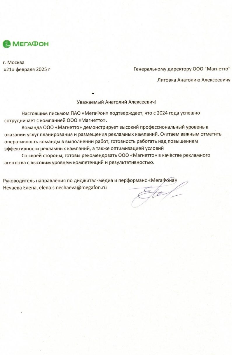 Самый большой плюс – совпадение медиаплана и результатов почти на 100%. Magnetto.pro работают ответственно: оперативно выходят на связь и быстро выполняют задачи. Это не просто исполнители, а компаньоны, с которыми приятно и выгодно сотрудничать!