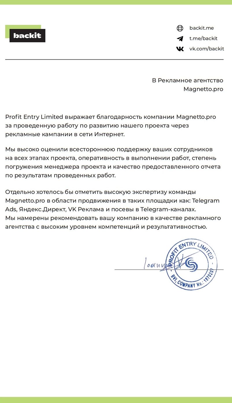 От лица нашей компании я хотела бы поблагодарить команду агентства Магнетто! Вы действительно профессионалы своего дела, которые доводят до результата в каждом случае! Очень сильная команда, отличная обратная связь, а самое главное, вы слышите и чувствуете своего клиента! Планируем и дальше развиваться вместе с вами! ❤️