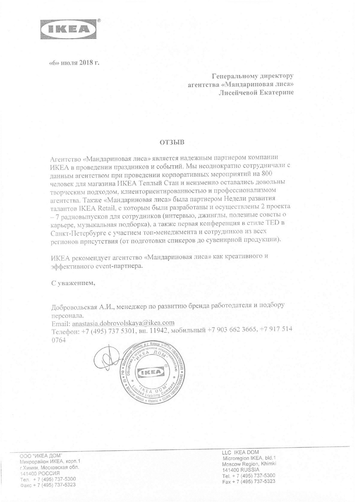 Добровольская А.И. Менеджер по развитию бренда работодателя и подбору персонала, ООО "ИКЕА ДОМ" (IKEA Russia)